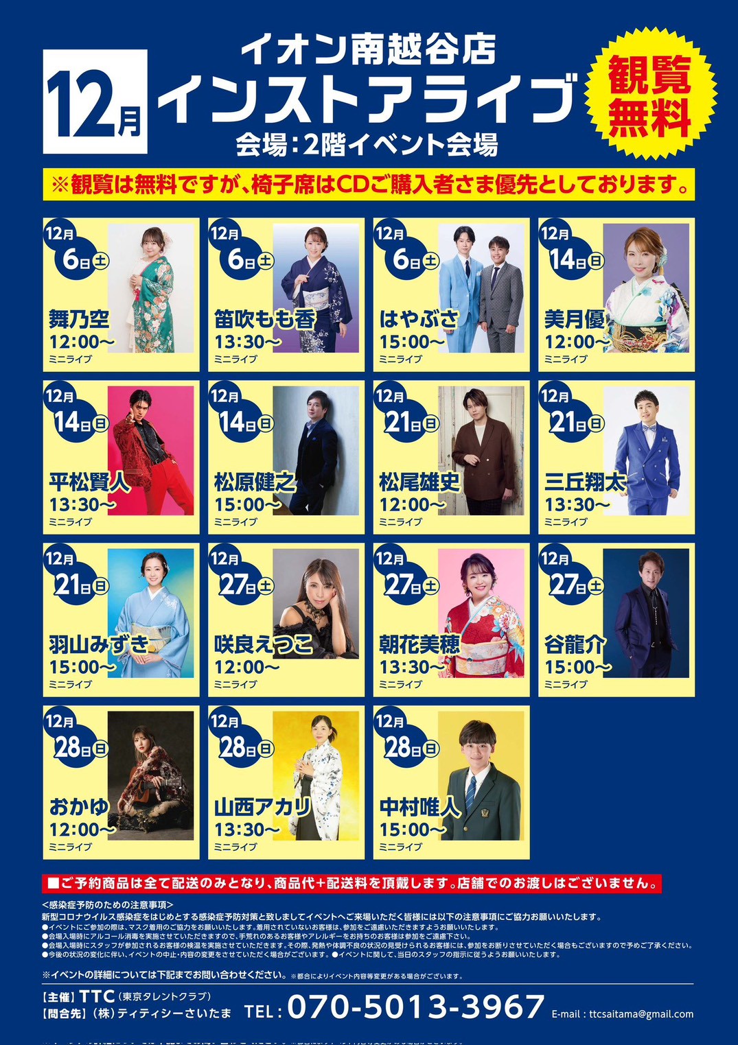 観覧無料、椅子席はCD購入者優先となります。 ※観覧多数の場合は入場制限あり